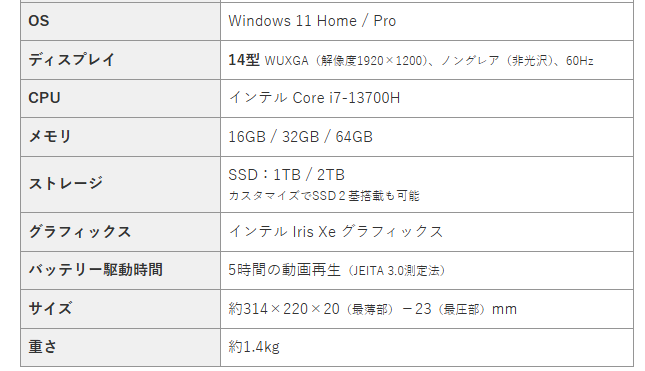 【スペック一覧】